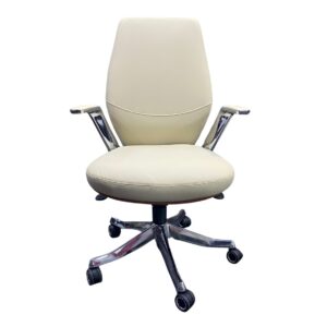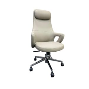Crafted for modern workspaces, this cream executive chair combines refined aesthetics with high functionality. The smooth leatherette upholstery adds a touch of elegance, while the plush seating and contoured backrest ensure all-day comfort. Chrome armrests and a stable 5-star base give it a premium edge, making it a perfect match for both professional and contemporary interiors. Whether in a cabin or home office, it speaks style and sophistication.