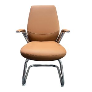 A perfect blend of elegance and comfort, this visitor chair features a luxurious tan leatherette finish and supportive padding. Its fixed sled base ensures durability and a stable sitting posture, ideal for meeting spaces and waiting areas. The chrome armrests add a modern touch while providing support with matching padded tops. Built to complement high-end interiors, this chair enhances your space with both comfort and professionalism.