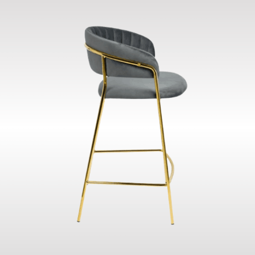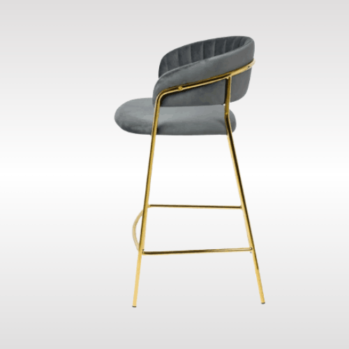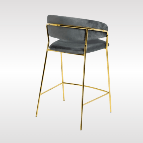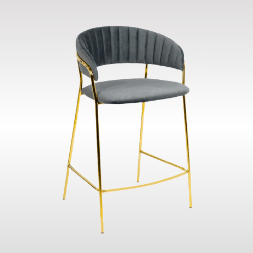 The seat and backrest are upholstered with soft and pleasant to the touch velour. The strong and stable construction of the Margo bar stools is made of metal in a shiny gold color. The Margo bar stool is a perfect combination of fashionable fabric and gold. Vertical stitching on the backrest adds elegance.The bar stool will perfectly fit into modern and classic interiors.the perfect complement to a kitchen island, dining room or restaurant. They please the eye of even the most demanding users.