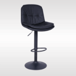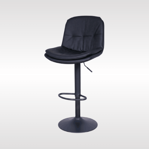 | Sleek bar stool featuring black faux leather upholstery with tufted cushioning and a contemporary black metal base for stylish home décor.Padded seat and backrest with ergonomic design provides excellent support during extended seating periods |