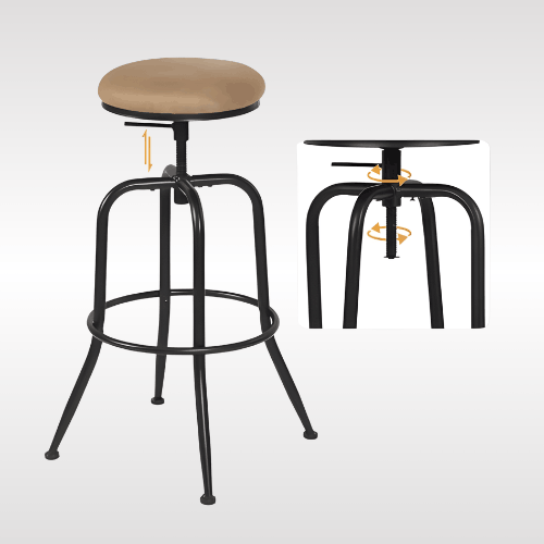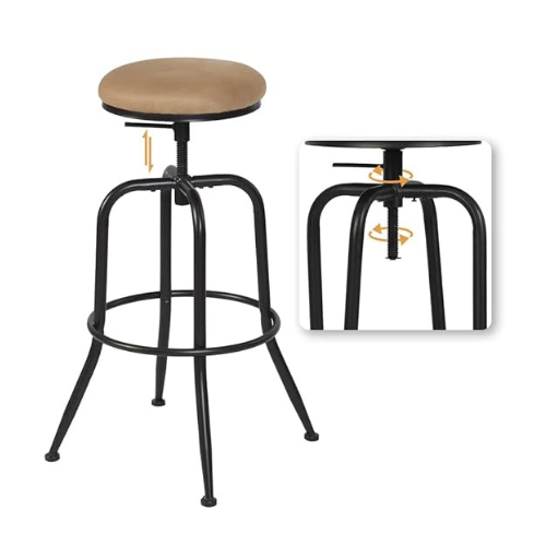 | ADJUSTABLE HEIGHT – With a seat that adjusts the adjustable bar stool can be adapted to fit counter or bar heights.We suggest that the table or bar is 10-inches taller than the stool or chair for your guests’ comfort.SWIVEL SEAT round stool seat swivels a full 360 degrees for versatile use at a kitchen island or peninsula, at a pub table, or in a commercial space.Made from powder-coated iron and real Elmwood. It features a footrest ring and floor-protecting plastic feet for added comfort and care. |