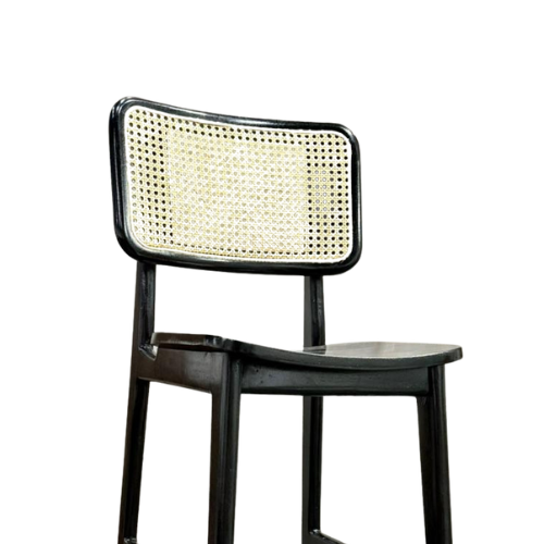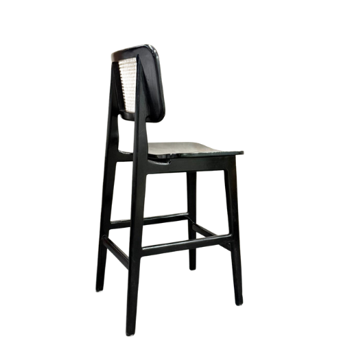 Stylish bar chair crafted from premium Sheesham wood, known for its durability and beautiful natural grain. The chair features a comfortable upholstered seat and an elegant woven cane backrest that provides support and breathability. Its sturdy wooden frame and footrest offer excellent stability and comfort for extended seating. Perfect for kitchen counters, bars, or cafes, this chair combines traditional craftsmanship with modern design to enhance any contemporary interior space.