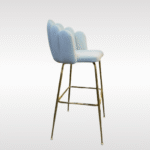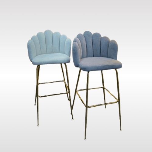 Elevate your space with this elegant bar chair, designed for both comfort and style. Featuring a soft upholstered seat with a unique scalloped backrest, it offers excellent support while adding a modern touch. The sleek metal legs provide durability and stability, making it perfect for kitchens, bars, or lounges. Its refined design blends easily with contemporary interiors, creating a sophisticated and inviting seating experience.