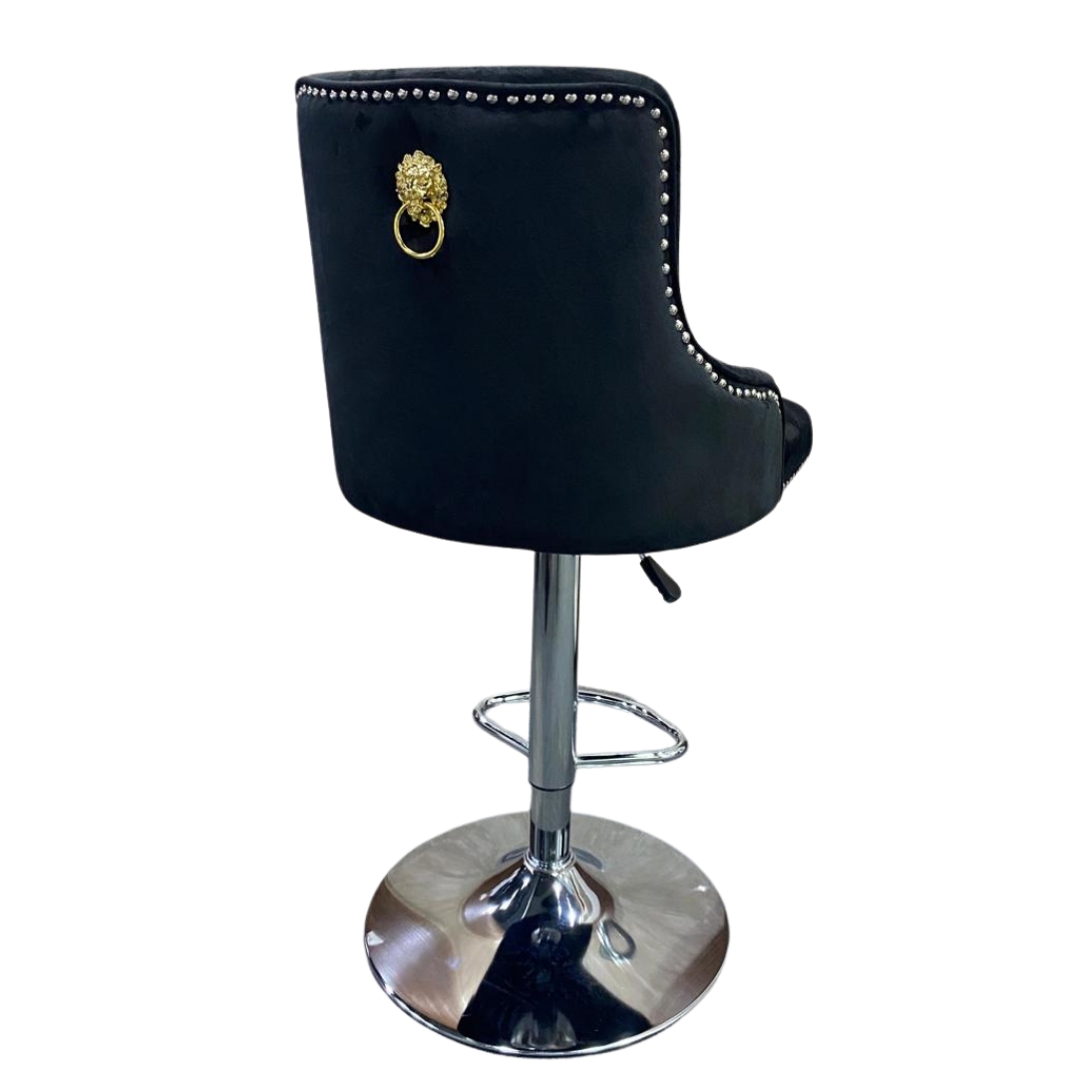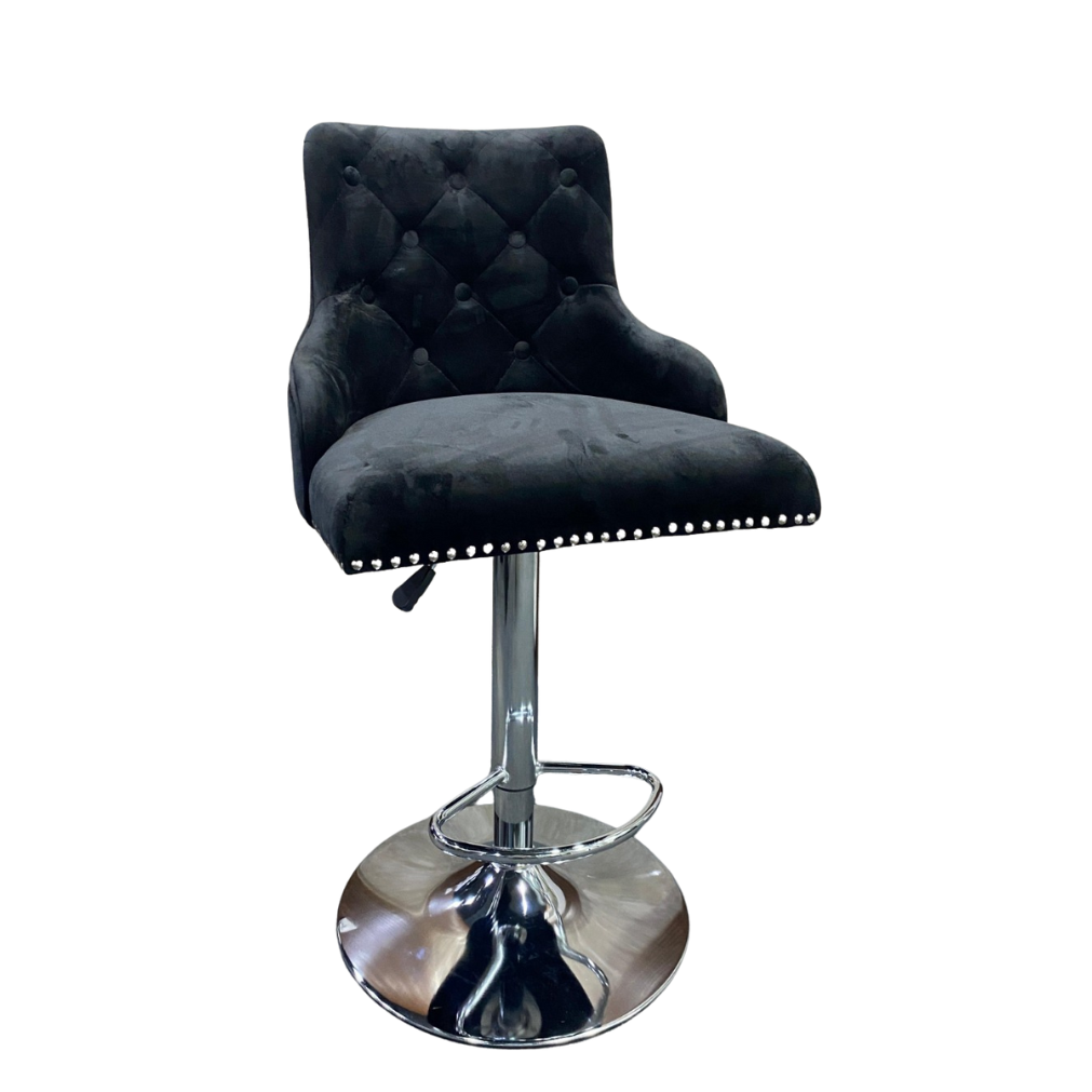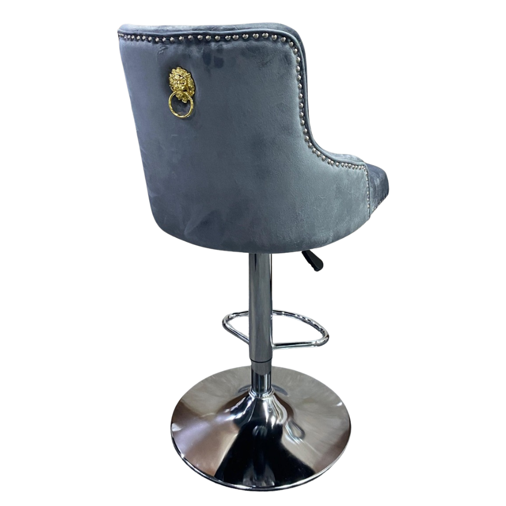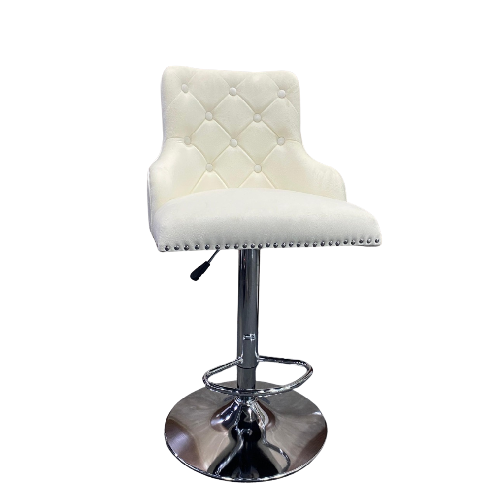 Supported by a durable chrome-finished pedestal base, the stool features a 360-degree swivel and a gas-lift mechanism for easy height adjustment, making it perfect for use at kitchen counters, home bars, or high tables. The built-in footrest provides added comfort, and the sturdy round base ensures stability.