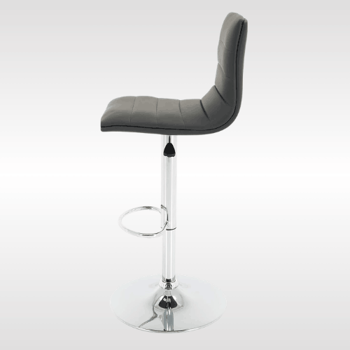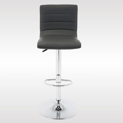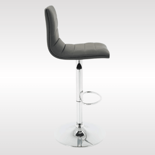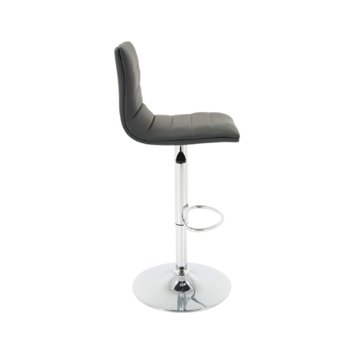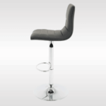 This adjustable bar stool is made with high-quality PU leather and a strong chrome steel frame for long-lasting durability. The wide, sturdy base supports up to 250 lbs and includes a rubber ring to prevent slipping, scratches, and noise. It features a thick padded seat, a supportive backrest, a built-in footrest, and a smooth 360-degree swivel for comfort.