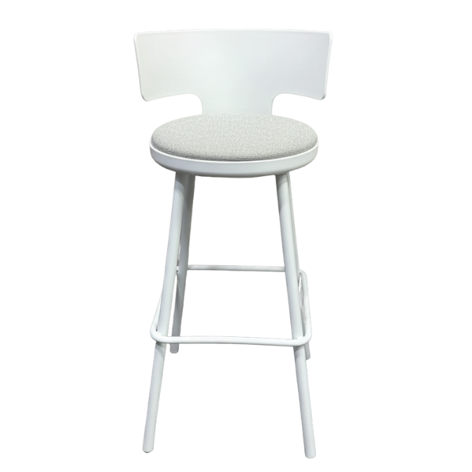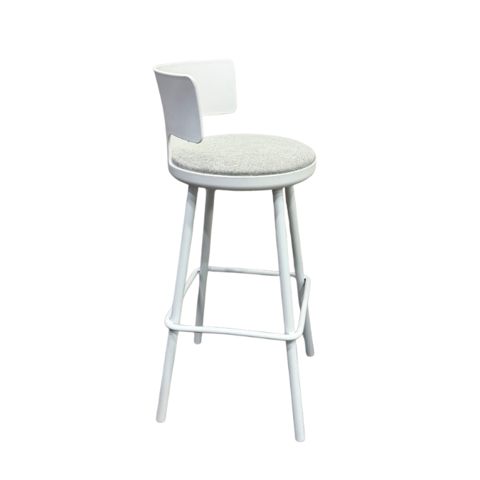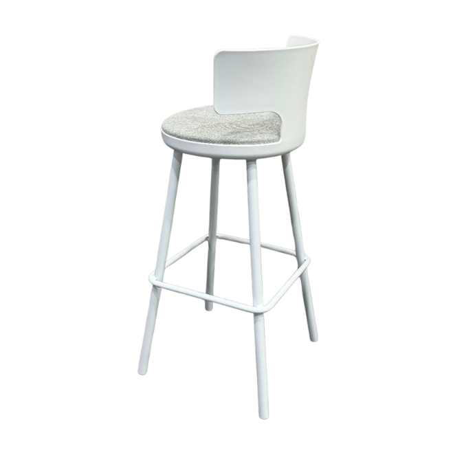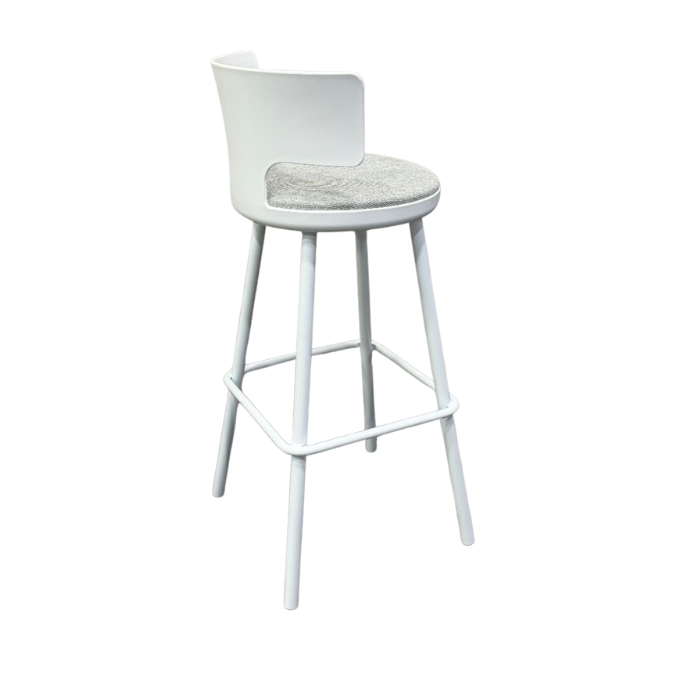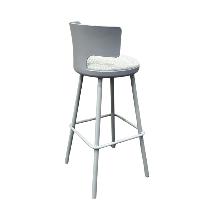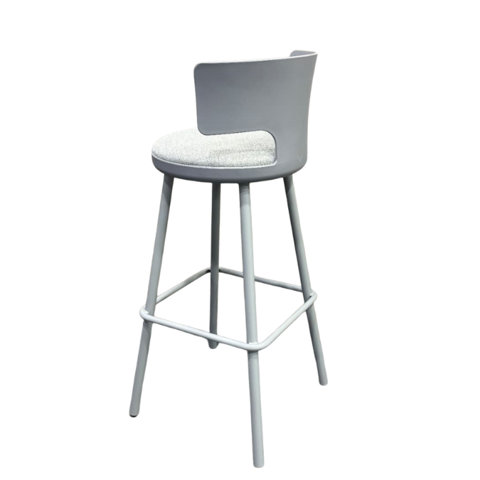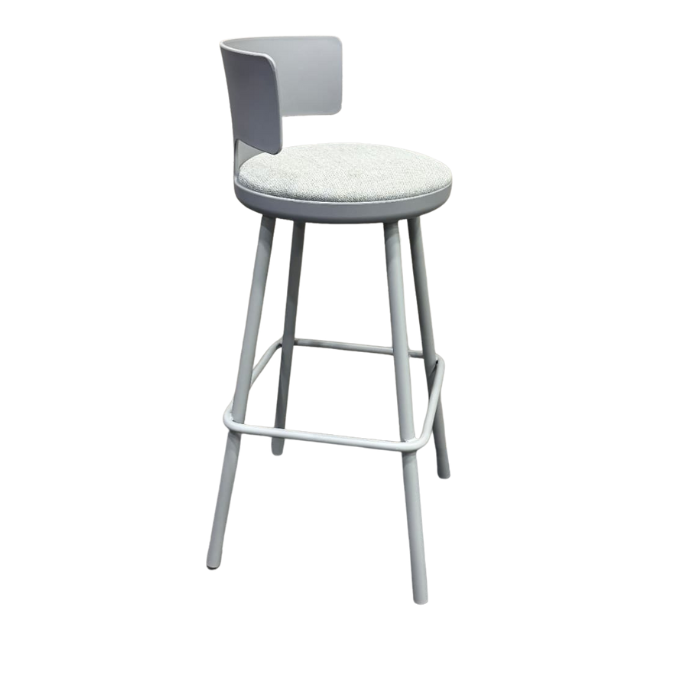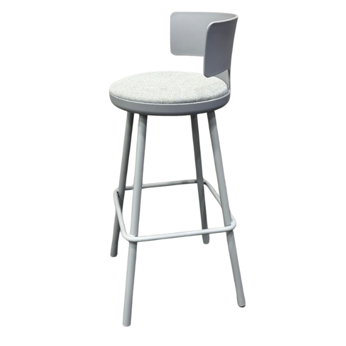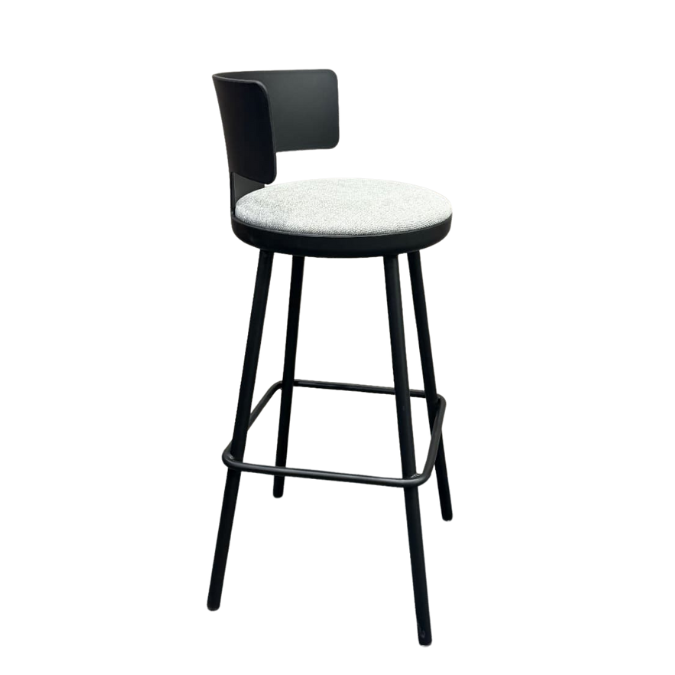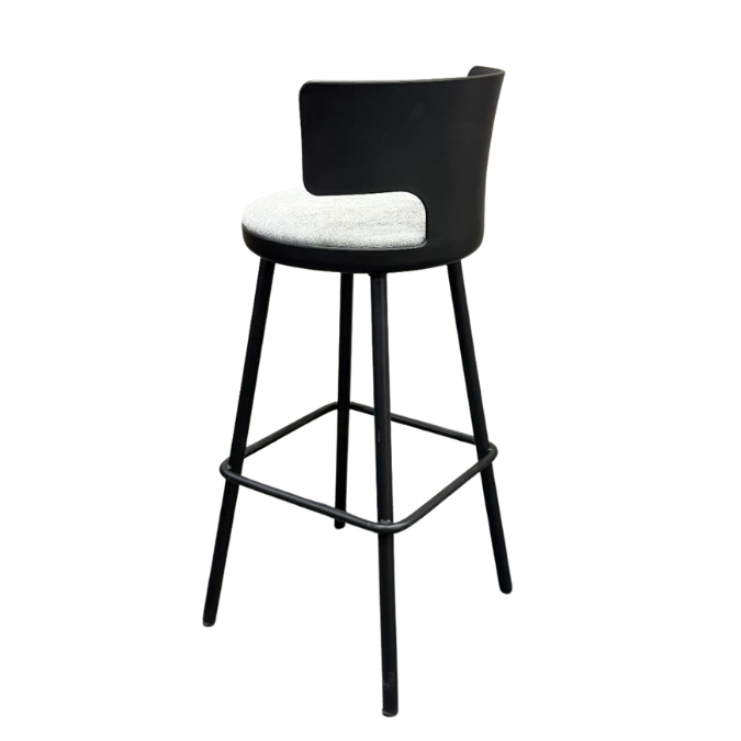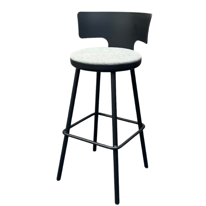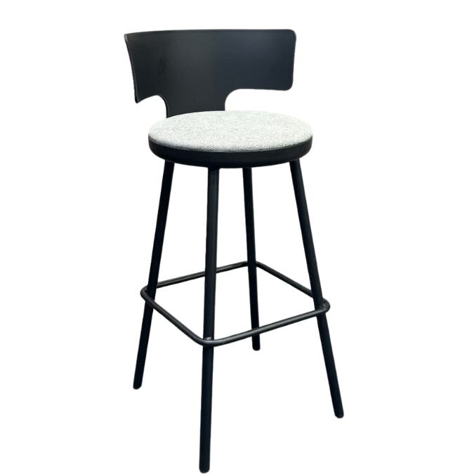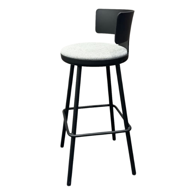 Introducing our Modern High Bar Stool, designed to elevate any café, restaurant, kitchen counter, or bar setup with its sleek and contemporary profile. This stool features a stylish curve backrest that provides comfortable lumbar support while adding a touch of minimalistic elegance. The round cushioned seat, upholstered in premium fabric, ensures long-lasting comfort for customers during extended seating.Built with a high-strength metal frame, this bar stool offers exceptional durability and stability.
