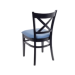 | A contoured cross-back style chair that offers both aesthetic appeal and back support for your customers. Customizable with a variety of finishes and upholstery options to suit your restaurant’s specific needs. The deep black color can be easily paired with your choice of upholstery, offering a seamless blend into your decor. Made out of strong beech wood and mortise and tenon joinery reinforced with metal brackets. To ease movement and safeguard your floors, each leg of the bar stool is fitted with a nylon glide. Nylon glides are attached to each leg of the chair for easy repositioning and to protect your floor surfaces. |