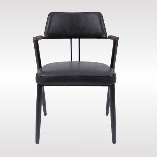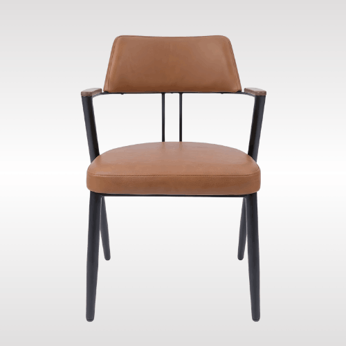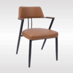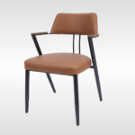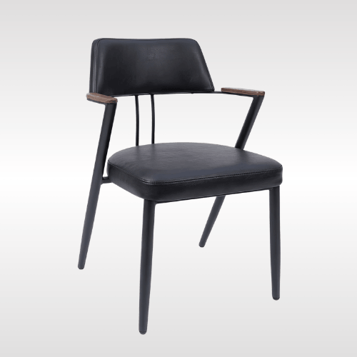 | Design: Sleek and modern with minimalist armrests and a Features: Ergonomic structure ideal for dining or office settings.supportive backrest.Material: Cushioned seat and back upholstered in faux leather with a metal frame.Usage: Suitable for home, office, or café environments. |