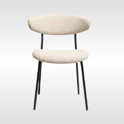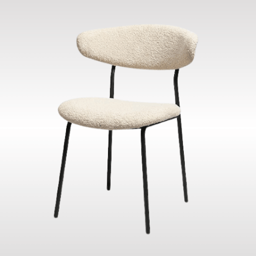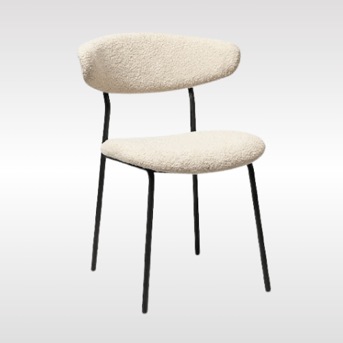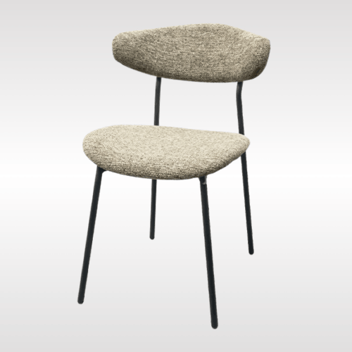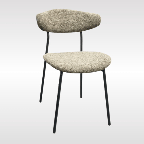 | Contemporary upholstered dining chair designed for comfort and modern aesthetics. It features a soft fabric seat and gently curved backrest that provide excellent support for everyday seating. The sleek metal legs ensure strong stability while maintaining a minimalist look. Available in multiple neutral fabric tones, it easily blends with various interior styles. Ideal for dining rooms, cafes, offices, or lounges, this chair offers a perfect balance of comfort, durability, and style. |