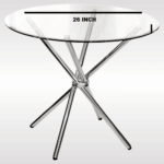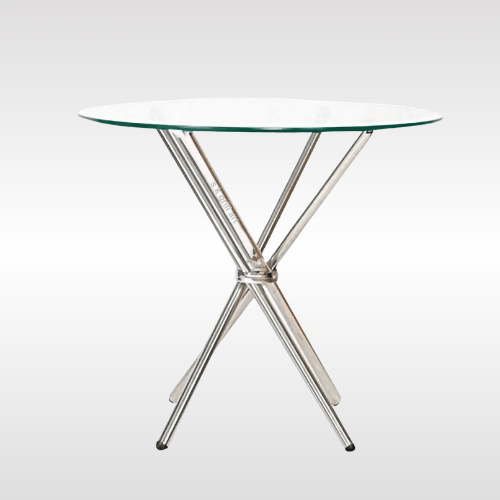 Table cross chopstick stand Table made of Mild Steel with Crome Plated . Table are use Modular and stylish with round 10 mm toughened glass.Primary Material: Steel.