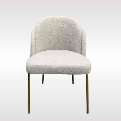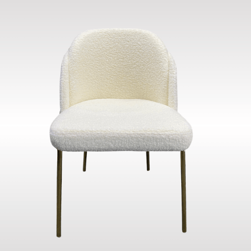| The dining chair is ergonomically designed with a one-piece molded seat and backrest. The backrest is padded with foam, so your back won’t feel hard when you lean on the boucle chair.These upholstered modern boucle dining chairs are finished with matte black metal legs that add sophistication to the dining room while also being sturdy. The modern design also makes these dining room chairs easier to match with your kitchen or living room. Dining chairs are very easy to assemble, we have detailed assembly instructions, just a few simple steps to assemble and use the dining chairs. |