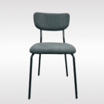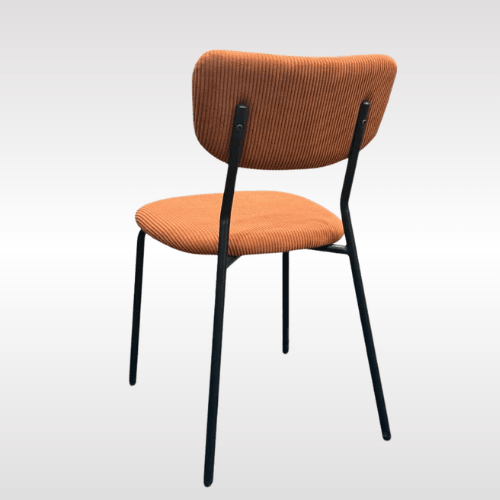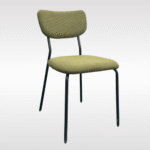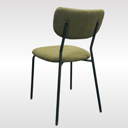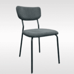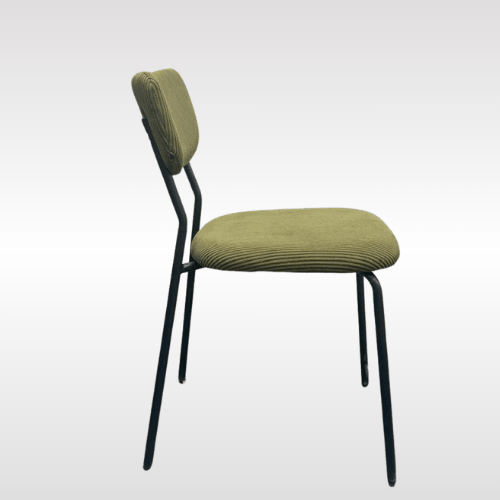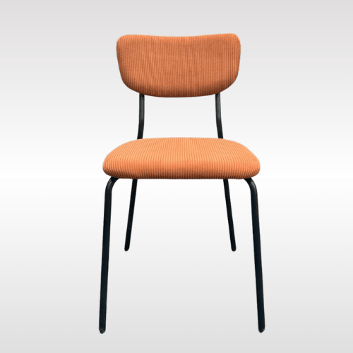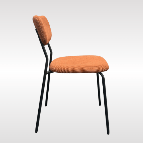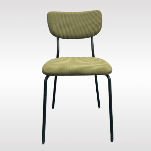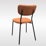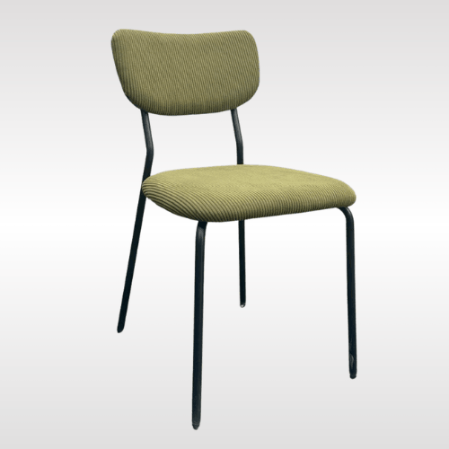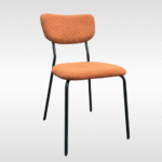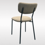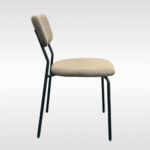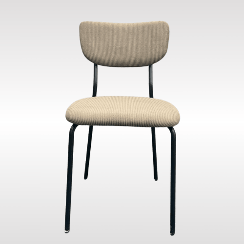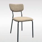 Modern upholstered chair with a soft textured fabric seat and curved backrest for comfort and support. The sturdy metal legs provide durability and a sleek, minimal look. Its neutral beige color blends easily with any interior. Ideal for dining areas, offices, or cafes, this chair combines style, strength, and everyday comfort in one elegant design.