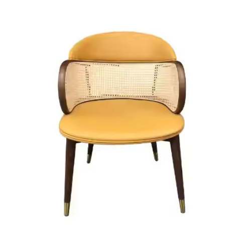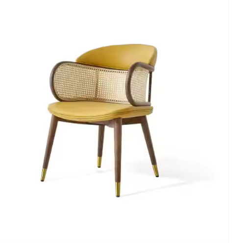 | Nordic Style Comfortable Dining Chair MDF Wood Rattan Soft Leather Cushion Home Bar Villa Office Cafe Design Living Room Bedroom |