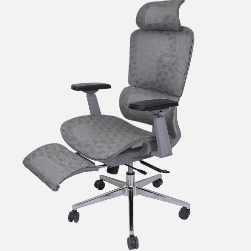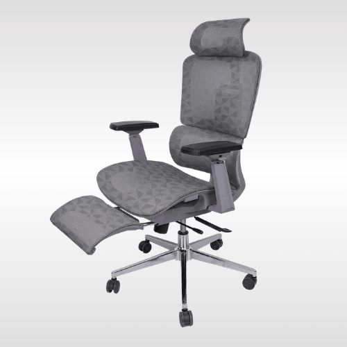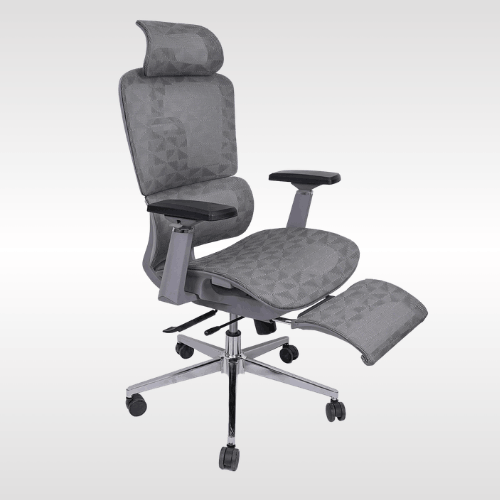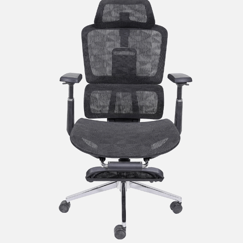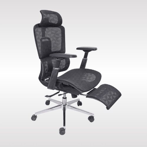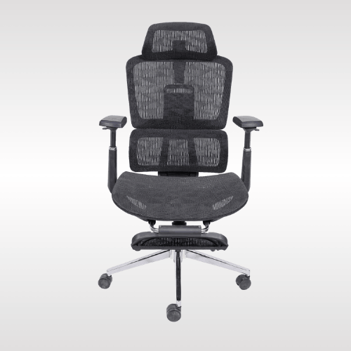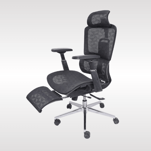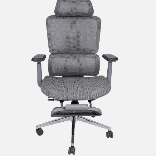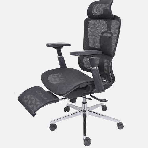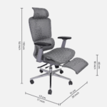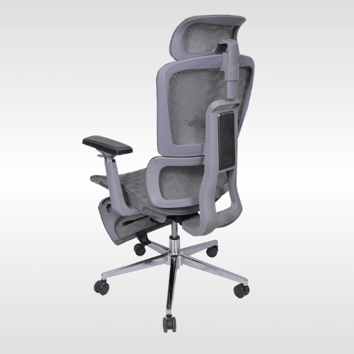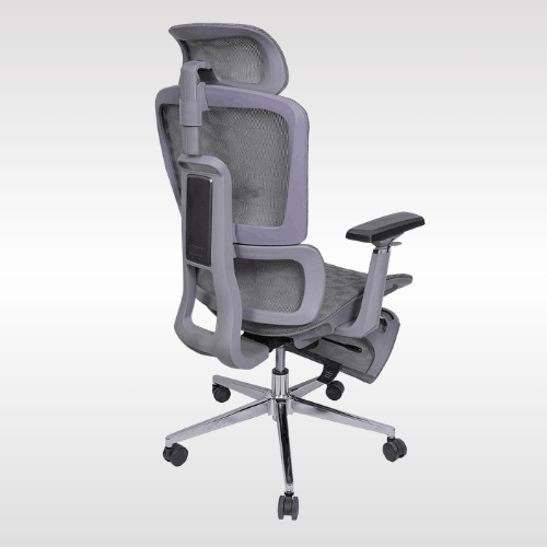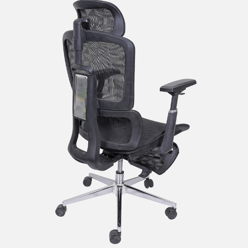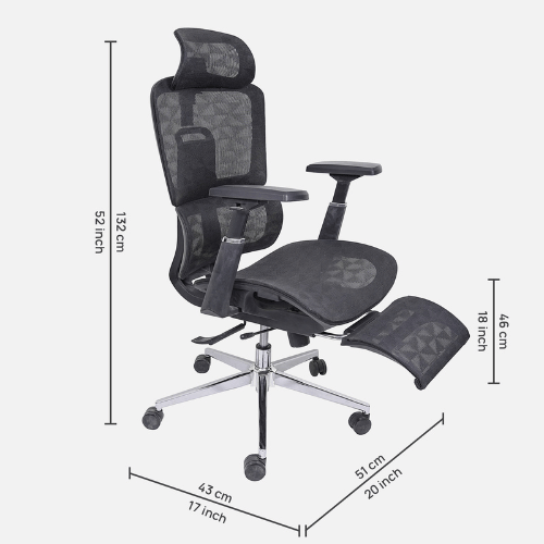 | Ergonomic Design: Supports natural spine curve for healthy posture.Thick Cushions & Breathable Mesh: Ensures comfort and airflow to prevent sweating.High Back Support: Designed for long hours of sitting with ease.Adjustable Height & Tilt Lock: Includes rocking mode, tilt tension knob, and Class 4 gas lift.Auto Lumbar Support: Adjusts automatically for lower back comfort.Adjustable Headrest: Height can be changed for better neck support.Material & Build: Nylon frame, wooden seat, mesh cover, 360° swivel.Strong Base: Chrome-finished metal base with dual nylon wheels for smooth movement. |