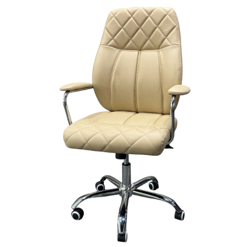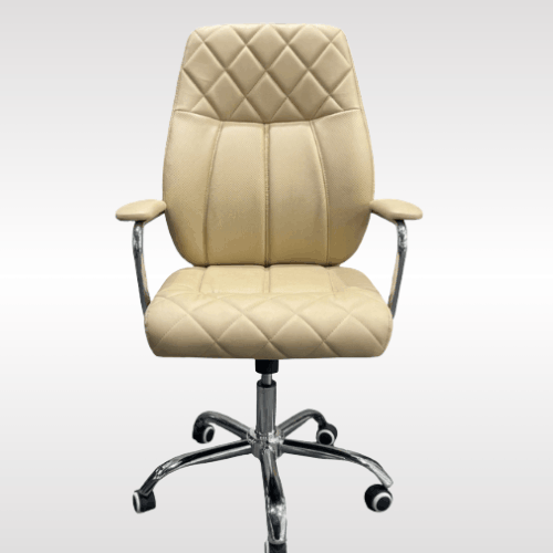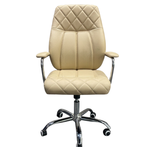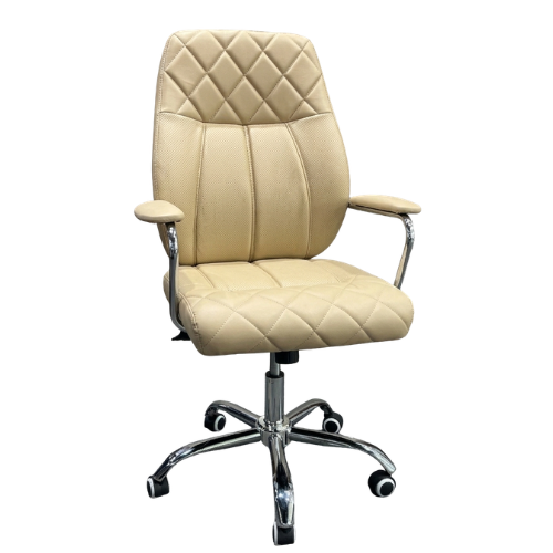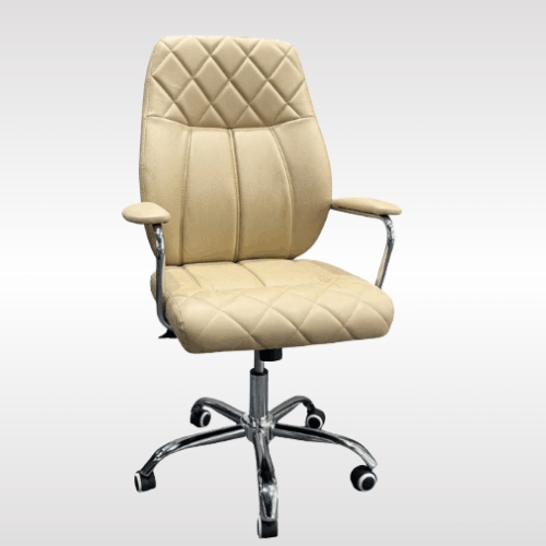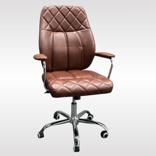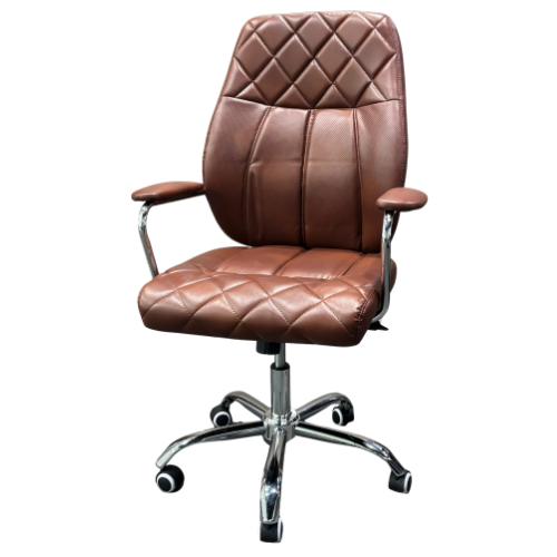 | This stylish executive office chair combines comfort with a premium look. Designed with soft cushioned seating and a quilted backrest, it provides excellent support during long working hours. The sturdy chrome base and smooth-rolling wheels allow easy movement around your workspace. With comfortable armrests and adjustable height, it helps you maintain a relaxed sitting position. Perfect for offices, meeting rooms, or home workspaces that need both elegance and comfort. |