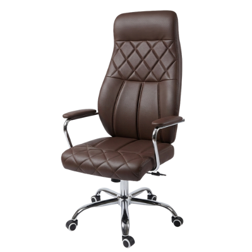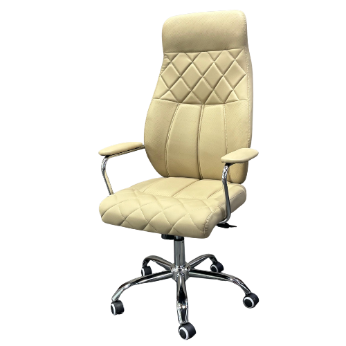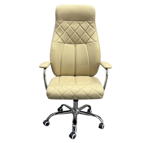 | This elegant executive office chair is designed to provide premium comfort and style. The soft cushioned seat and tall backrest offer excellent support, making long working hours more comfortable. Its quilted design adds a touch of sophistication, while the sturdy base with smooth-rolling wheels ensures easy movement. With supportive armrests and adjustable height, this chair is perfect for offices, meeting rooms, or home workspaces seeking both comfort and a professional look. |