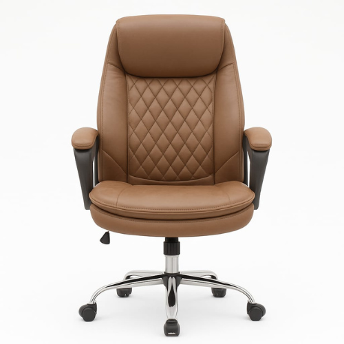 | Made with wear-resistant, skin-friendly PU leather and solid metal feet for added durability and a high-end look.High Back with Enhanced Support: Features a large, comfortable headrest for full neck support and a diamond grid pattern for added elegance and style.Superior Comfort: Double-layered cushioning ensures a soft, pressure-relieving sitting experience, ideal for extended use.Smooth & Silent Mobility: silent wheels rotate 360°, glide smoothly on carpet or hard floors, and prevent floor damage. |