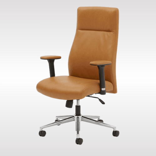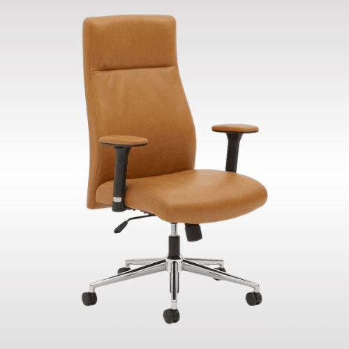 | LEATHER OFFICE CHAIR: This stylish leather desk chair lives where comfort and style intersect–smooth and pliable SofThread leather seating and tuxedo design on the back creates a contemporary, upscale look with a comfy feel.ERGONOMIC ADJUSTMENTS: Let this comfortable computer chair take care of your body while you work with an ergonomic, adjustable recline that keeps your back aligned.Pull up to your computer desk, swivel around to collaborate with your teammate.We use only high-quality materials to keep your chair rolling for years. |