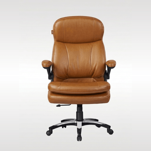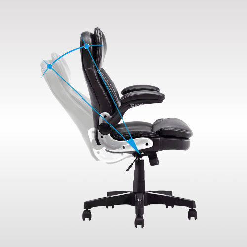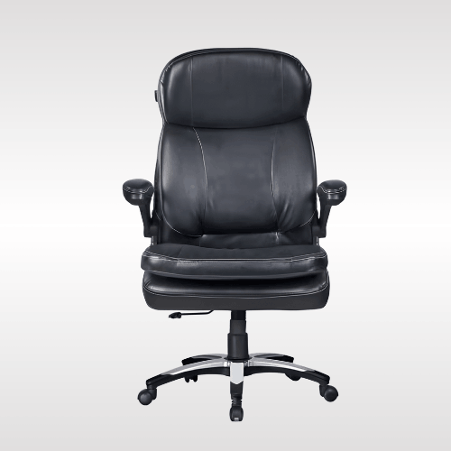 | The chair provides superior luxury and comfort even during long, intense work hours. The premium thread stitched diamond pattern provides a sophisticated detail that provides additional comfort.INTEGRATED SUPPORT: This executive chair features an integrated headrest and arms that are padded for all-day comfort and support with a five-star base that is molded from reinforced resin with a 360-degree swivel.The heavy duty tilt mechanism allows the chair and seat to tilt back together up to 135 degrees, or can be locked at the 90 degree position for focused work. |