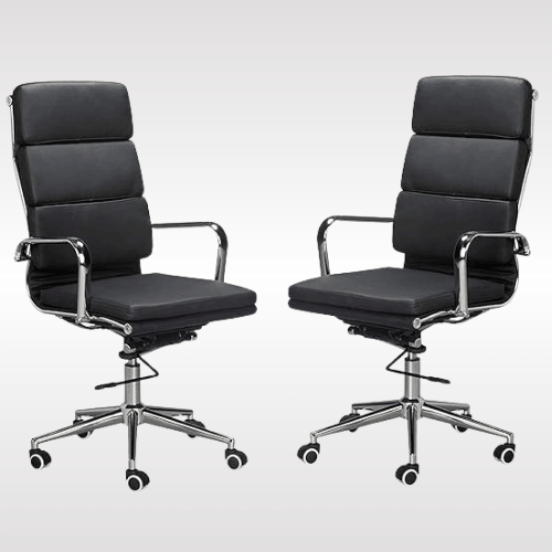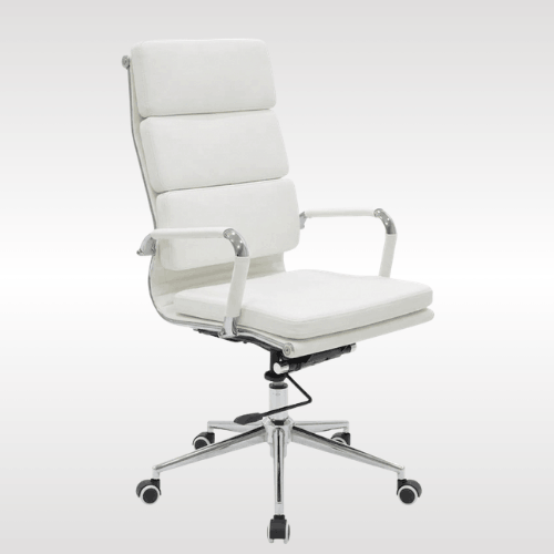 | Ergonomic High Back Support: Segmented design reduces pressure on back, waist, and shoulders.Modern & Versatile Design: Sleek look fits vanity rooms, home offices, salons, studies, and more.Soft & Resilient Padding: Comfortable cushioning supports thighs for long sitting sessions.Streamlined Alloy Armrests: Naturally curved to fit arms, offering comfort while relaxing.Tilt & Swivel Function: 360° rotation with 90°–120° tilt for rocking and free movement. |