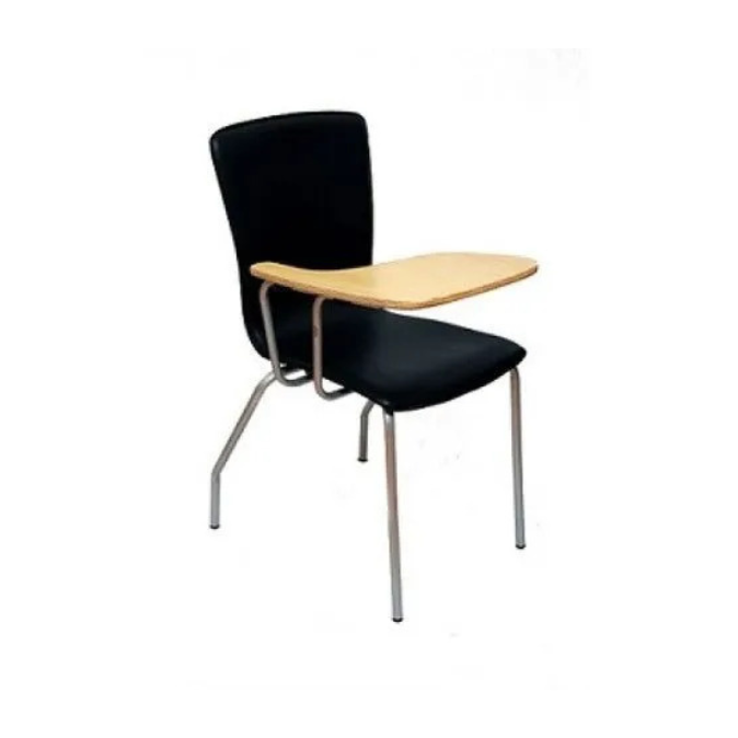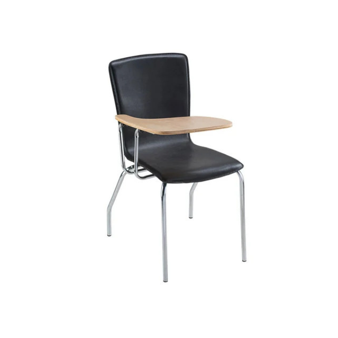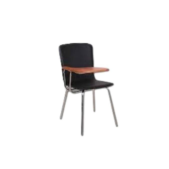 Enhance your train­ing or class­room envi­ron­ment with this ergonom­i­cal­ly designed Stu­dent Writ­ing Chair. Fea­tur­ing a stur­dy chrome-plat­ed met­al frame, a high-den­si­ty foam seat and back­rest uphol­stered in black leatherette, this chair offers both com­fort and dura­bil­i­ty. The inte­grat­ed wood­en writ­ing pad on the right side pro­vides a con­ve­nient work­space for note-tak­ing or using a lap­top. Ide­al for sem­i­nar halls, coach­ing cen­ters, or train­ing rooms, this chair com­bines func­tion­al­i­ty with sleek design to sup­port focused learn­ing ses­sions.
