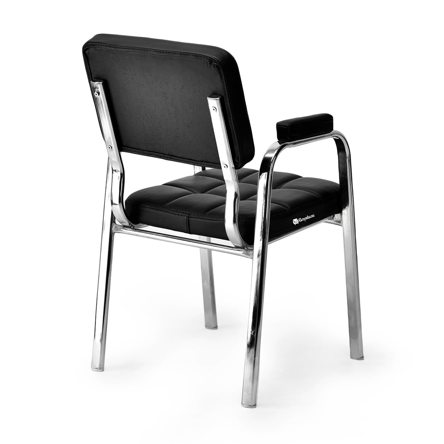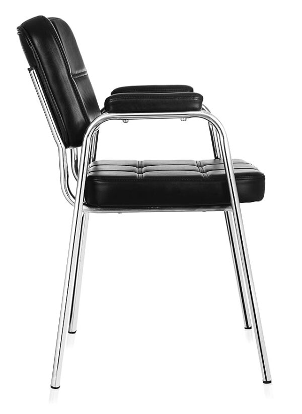 | Featuring a chrome plated heavy duty metal frame with gently curved & padded armrests for stability.SLED BASE : A sturdy tube frame with armrest and leatherette covered seat & back creates the ultimate stability and comfort.PROFESSIONAL LOOK : This guest chair offers a professional appearance in any office setting such as a reception area, in front of a desk, or at a conference table.EASY TO CLEAN : Leg of the chairs comes with the protector pads to the bottoms to prevent the floor from scratches. And easy to clean with dry cloth. |