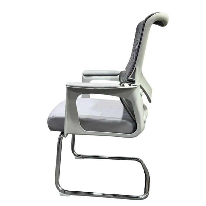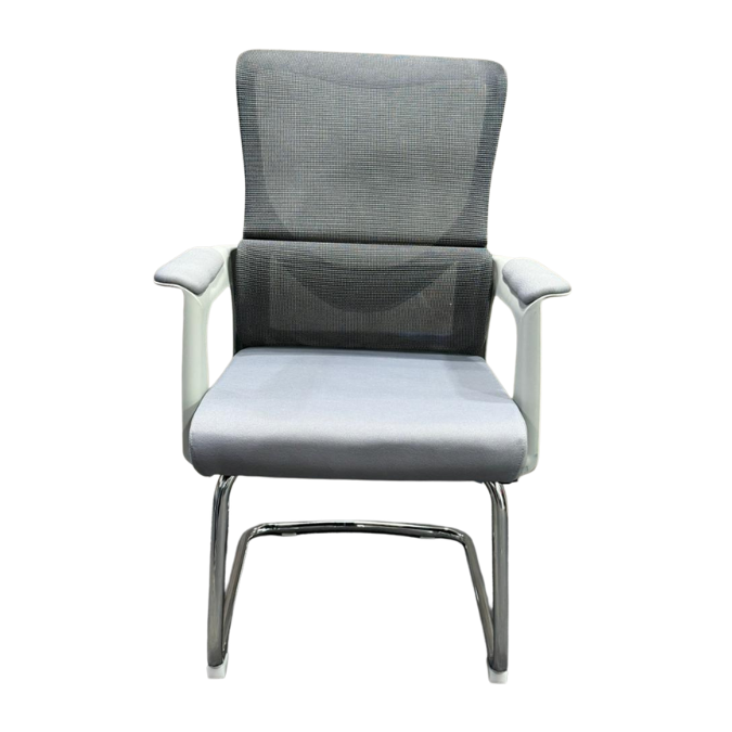 This mod­ern vis­i­tor chair is craft­ed with high-qual­i­ty mate­ri­als to deliv­er com­fort, sta­bil­i­ty, and a pro­fes­sion­al appear­ance. It fea­tures a breath­able mesh back­rest that pro­motes air­flow and sup­ports prop­er pos­ture, mak­ing it com­fort­able for extend­ed seat­ing. The seat is uphol­stered in durable fab­ric and padded with high-den­si­ty foam to pro­vide last­ing com­fort. Smooth arm­rests offer addi­tion­al sup­port for relaxed seat­ing. The strong met­al sled base ensures excel­lent sta­bil­i­ty and dura­bil­i­ty while main­tain­ing a sleek look. This chair is suit­able for office recep­tion areas, wait­ing rooms, con­fer­ence rooms, meet­ing spaces, and vis­i­tor seat­ing zones. Its clean, con­tem­po­rary design blends well with mod­ern inte­ri­ors. In addi­tion to the ele­gant light shade shown, this chair is also avail­able in a styl­ish grey col­or option, allow­ing easy coor­di­na­tion with dif­fer­ent office décor themes.