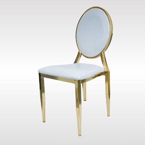 | The Gold and white leather design chair – DOVE combines perfectly elegance and comfort. Designed in gold stainless steel with a coating white leather, this refined chair will bring a modern and luxurious touch to your events or inside you. Available at GROSSIST PRICE at Passion Décor, this chair combines durability and aesthetics for a chic and comfortable seat. |