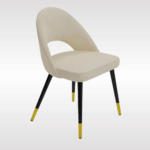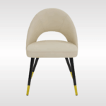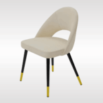 | This sleek dining table brings simple into modern. The circular top is designed to hold eight people, making sure it is extra safe for the elderly and kids. It has a pinewood pedestal base offering sturdy stability. Have a good time with your families and friends and enjoy good food. This comfortable chair is made of velvet and features angled legs. It radiates a mid-century modernist vibe, characterized by a broad curved backrest and an armless profile. |