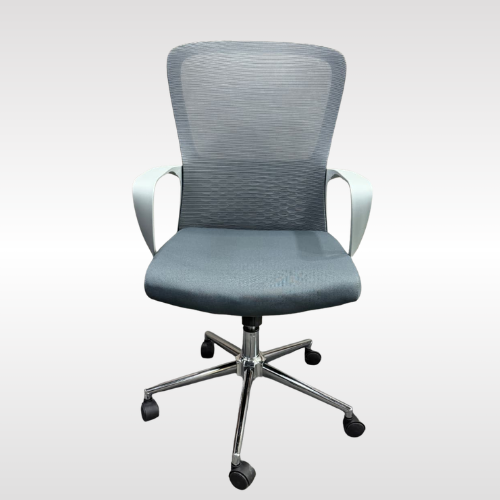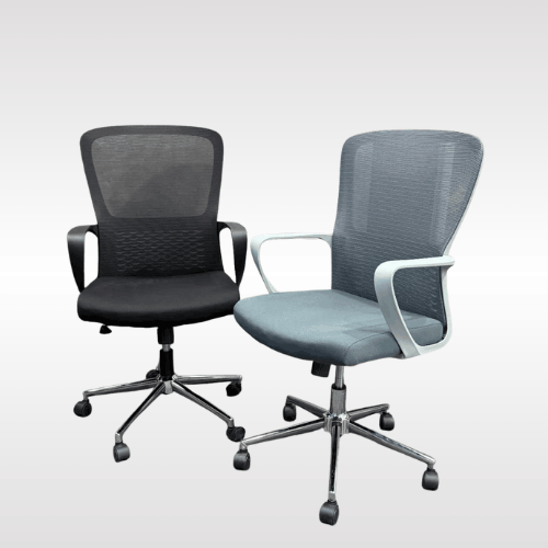 | This comfortable office chair is designed to support you through long hours of work. It features a breathable mesh back that helps keep you cool, along with a soft cushioned seat for everyday comfort. The smooth-rolling wheels and adjustable height make it easy to move and customize to your desk. With its clean, modern design and sturdy base, it fits perfectly in offices or home workspaces. Available in grey and black colors. |