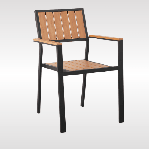 Imported patio dinning chair is aluminium powder coated frame with unique wood material that not only replicates the agin and testure of real but also offer enhanced weight bearing capabilities compared to solid wood . Addtionally with a special design, making it more suitable for outdoor use . that is resistant to rust and waterproof of easy cleaning.