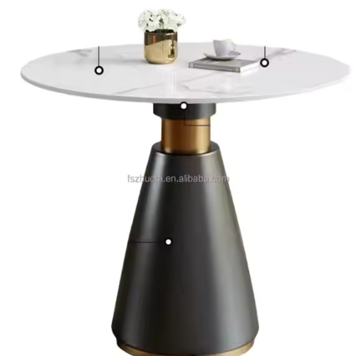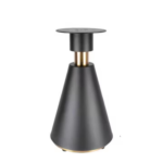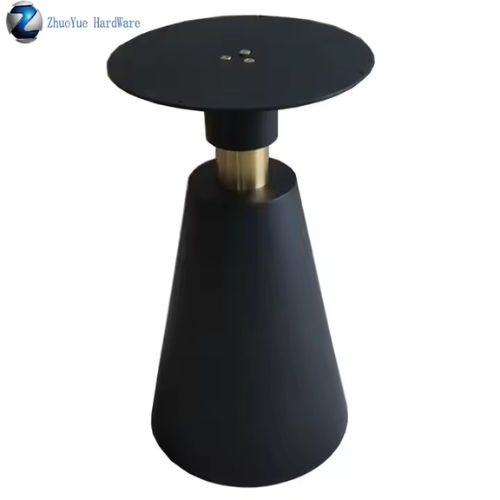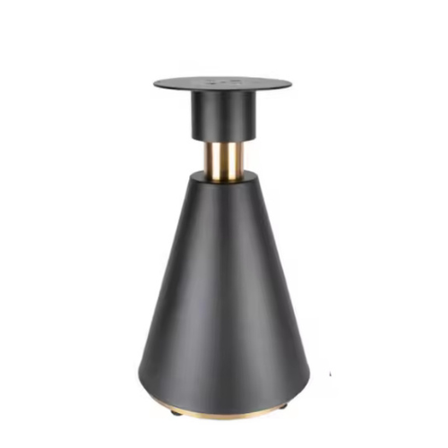 The table base in the image is a luxury cone-shaped pedestal table base with a modern metallic finish, suitable for high-end dining, cafes, hotels, and commercial interiors. It features a clean, elegant design with metallic gold detailing, giving it a premium and sophisticated appearance. Circular metal plate with pre-drilled holes for mounting tabletop Compatible with round or square table tops ,Ideal for marble, stone, or solid wood tops, Luxury appearance with black & gold finish.Easy to clean and maintain