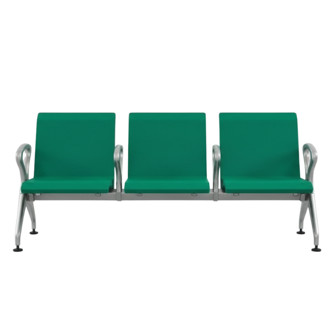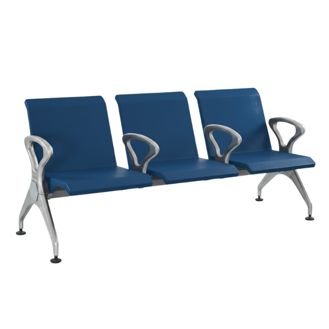 This waiting lounge chair is designed to offer comfortable and practical seating for busy spaces. It features three wide seats with a strong metal frame that ensures durability and stability for daily use. The smooth seat and backrest provide good support, helping people relax while waiting. Stylish armrests add extra comfort and a modern touch. Ideal for offices, hospitals, airports, and reception areas. This chair is available in four attractive colors: black, blue, grey, and green, making it easy to match different interiors.