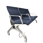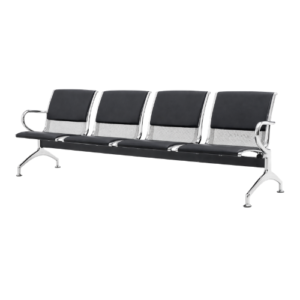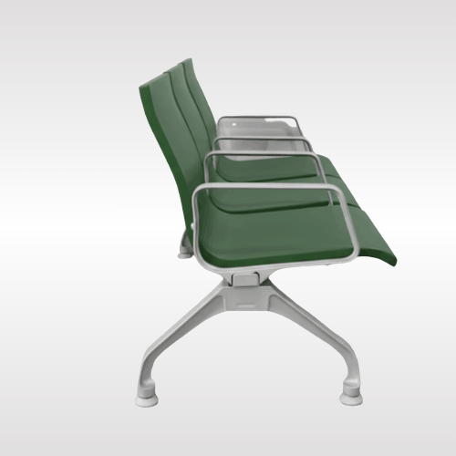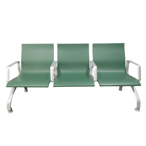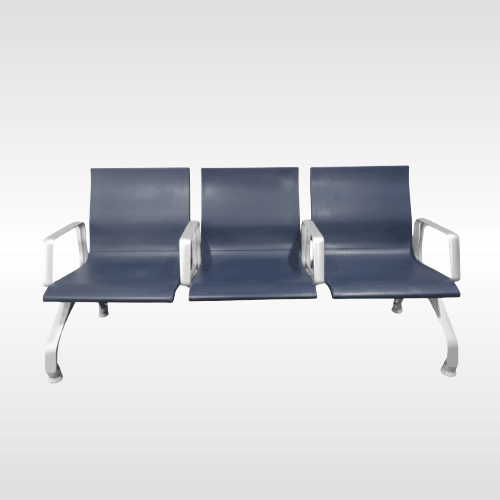 This waiting lounge chair is designed to provide comfortable seating for public spaces. It features three wide seats made with durable material that offers good support for everyday use. The smooth surface is easy to clean, making it ideal for busy places. Strong metal legs provide stability and long-lasting strength. Armrests on both sides add extra comfort for users. Perfect for hospitals, offices, airports, and reception areas, this chair combines practicality, comfort, and a clean modern look for welcoming waiting environments.