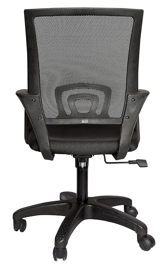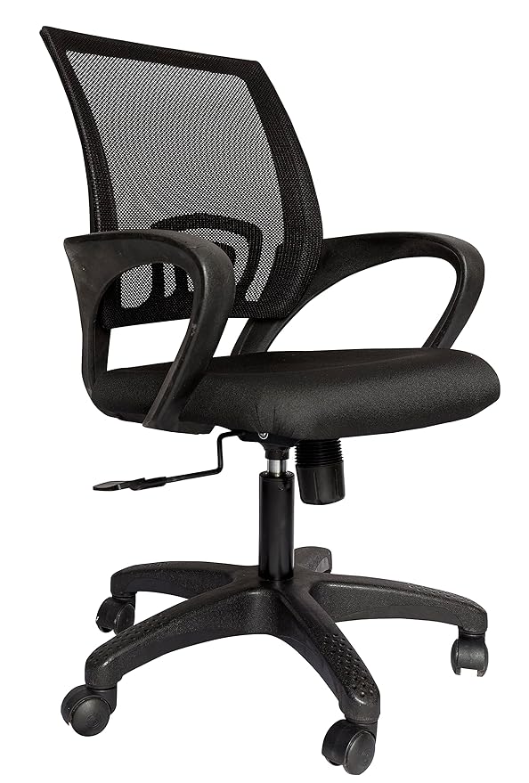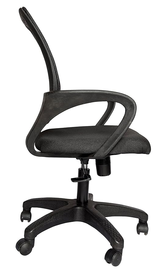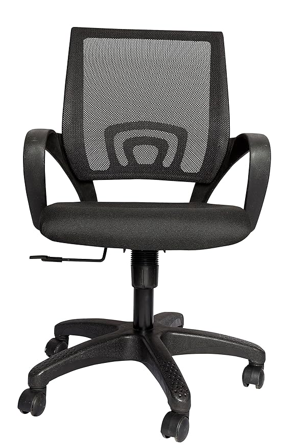 Seat construction: Ply base with moulded foam – gives uniform comfort with high resilient compression. Back seat construction: PP shell frame with a netted mesh back for ventilation purposes.Armrest: Static armrest – ergonomic design for good elbow support. Height adjustable mechanism: Manual gas lift with 4″ multi-level height adjustment.Tilt mechanism/push back mechanism: Center tilt mechanism – The seat and backrest tilts thereby the body maintains its right angle even while reclining.
